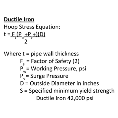 The most notable difference is the safety factor. The safety factor for DI pipe is 2.0 versus the safety factor for steel, ranging from 1.33 to 2.0, depending on the percent of yield strength used.