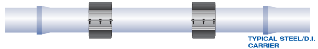 When utilizing a casing pipe with Ductile iron (or any material), you will typically be required to install what are called Casing Spacers or Polyethylene Runners on the outside of the barrel of the carrier pipe.