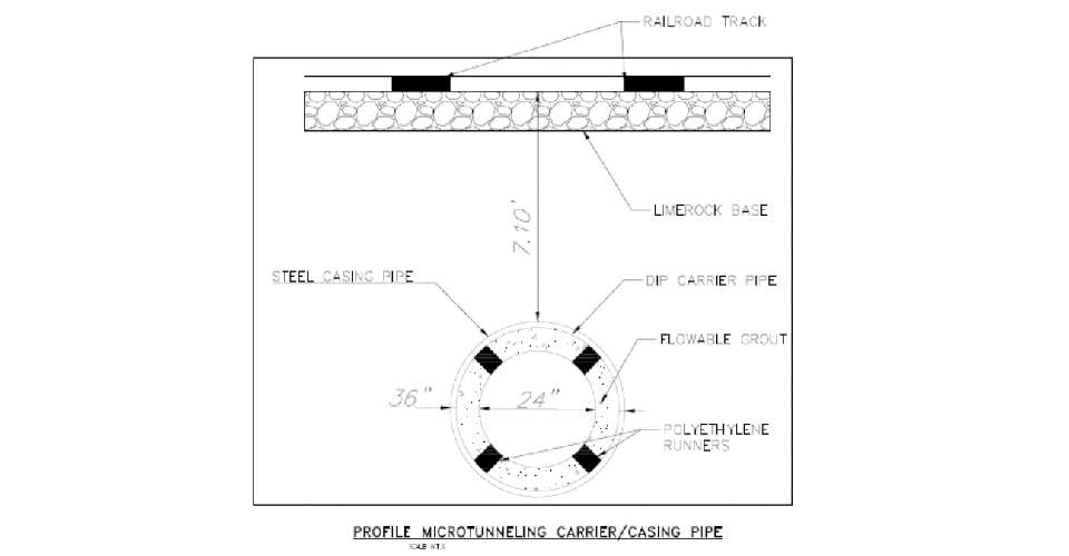 I mention pipe or pipes as it is possible to have more than one pipeline or conduit running through a single casing pipe, which will be illustrated later. For our example, we will be looking at 24-inch diameter Ductile iron pipe (DI pipe) as the carrier pipe throughout this blog.
