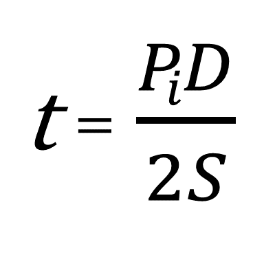 Rearranging the hoop stress equation allows computation of the ultimate pressure containment capability for any given size and known wall thickness of DI pipe.