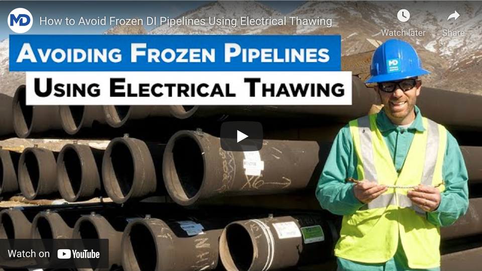 To provide electrical conductivity from one rubber gasket pipe joint to another for the purpose of thawing frozen water mains, some specifiers require that Ductile iron (DI) pipe be furnished with a device that provides such conductivity.
