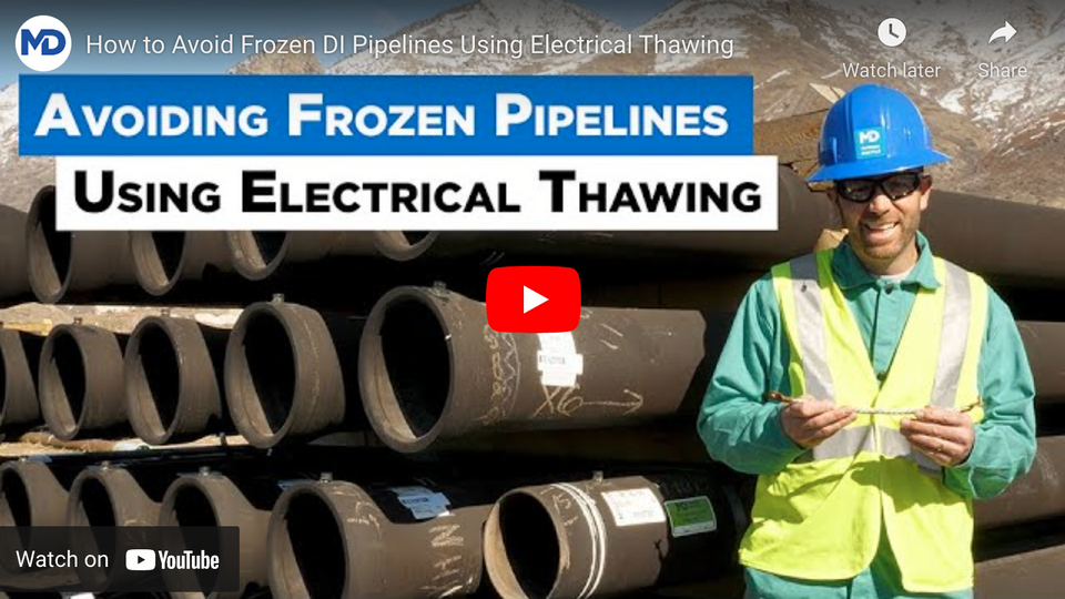 To provide electrical conductivity from one rubber gasket pipe joint to another for the purpose of thawing frozen water mains, some specifiers require that Ductile iron (DI) pipe be furnished with a device that provides such conductivity.